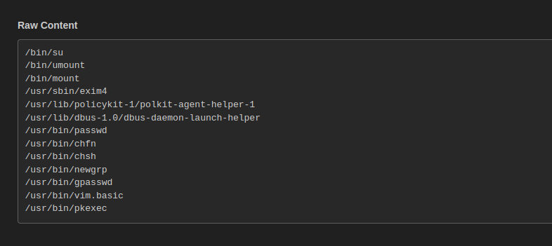 Sau khi tìm kiếm tất cả các file được thiết lập SUID, đây là kết quả trả về