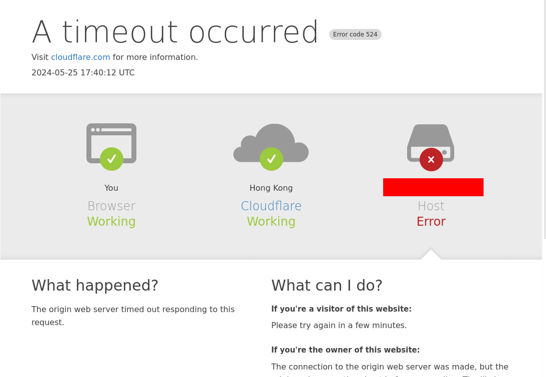 sh -c "command_của_bạn"Có lẽ vì nó mà mình không thể trực tiếp thực thi lệnh tạo Reverse Shell khi đang SQL Injection. Nếu cố chấp, hệ thống sẽ trả về thông báo lỗi Child process exited with exit code 35 (hoặc cái gì đó tương tự), hoặc nếu cố tình spam Payload thì bạn sẽ bị Cloudflare block như này